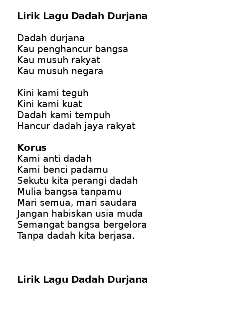 Lagu Dadah Durjana Muzik Lirik Youtube
