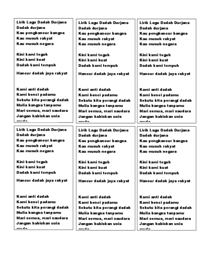Lagu Anti Dadah Lirik